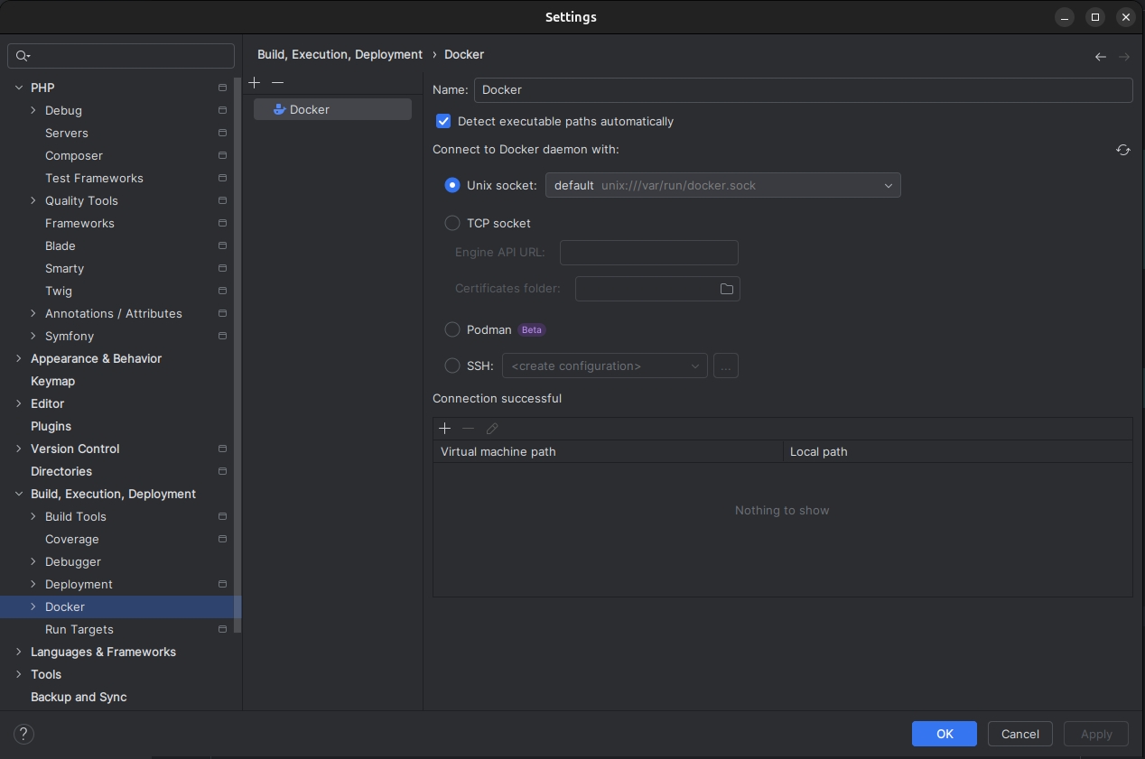 Also check the Docker settings in your IDE. For example, in PhpStorm go to Build, Execution, Deployment > Docker